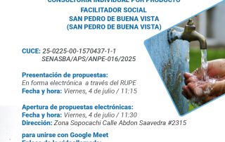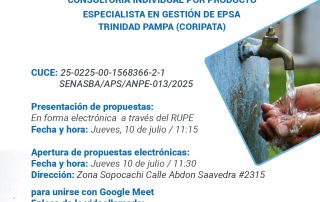 El Servicio Nacional para la Sostenibilidad de Servicios en Saneamiento Básico SENASBA invita al evento que se realizará el día martes 31 de marzo del 2025 a horas 15:00 p.m. en la modalidad virtual a través de los links: Ingreso a Facebook